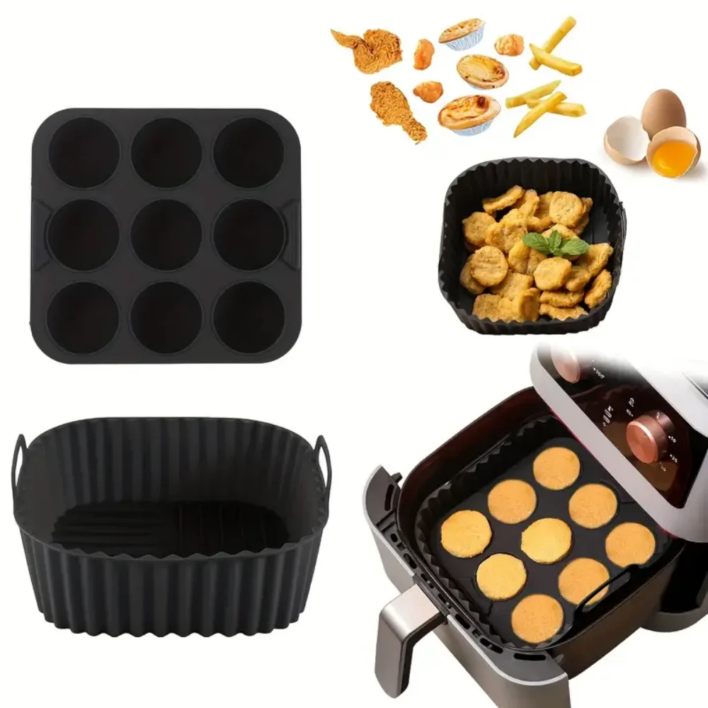 [Resistente ao calor e seguro para alimentos] - Feito de silicone de alta qualidade, livre de BPA e próprio para alimentos, suporta temperaturas de até 230°C e é adequado para fritadeiras elétricas, cozimento a vapor e fornos. Nosso revestimento interno de silicone quadrado para fritadeira elétrica é reutilizável e não deforma ou danifica mesmo após centenas de usos. É o acessório mais valioso para fritadeiras elétricas sem óleo.